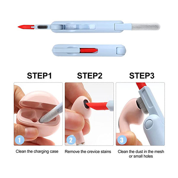 قلم نظافت جمعشونده با نوکهای سیلیکونی و اسفنجی برای تمیزکاری نقاط توری و داخل کیس هندزفری