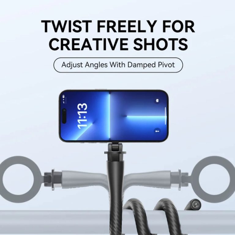 گردن منعطف و بلند: با بازوهای انعطافپذیر 70 سانتیمتری که در زوایای مختلف قابل فرمدهی هستند – مناسب برای فیلمبرداری از بالا، کنار، یا بهصورت سلفی.