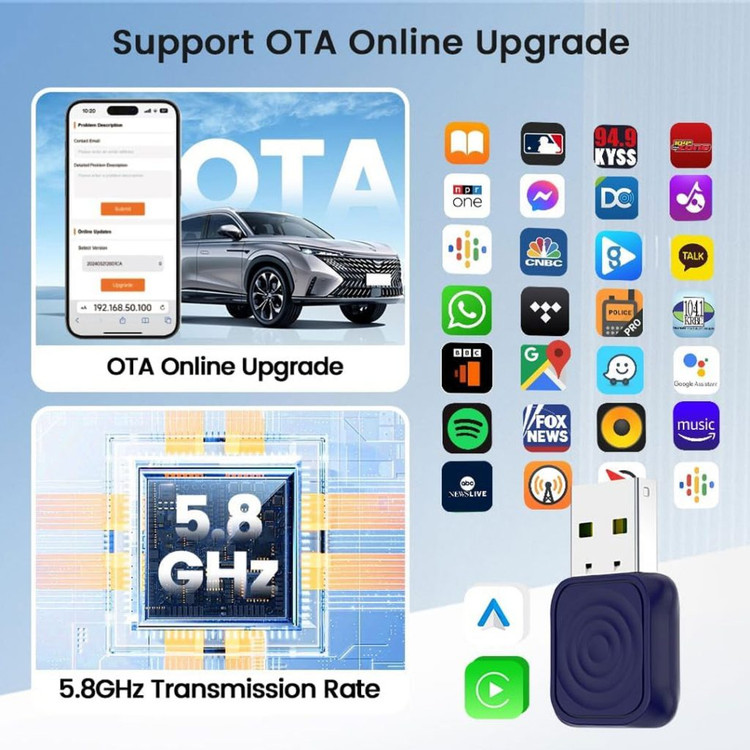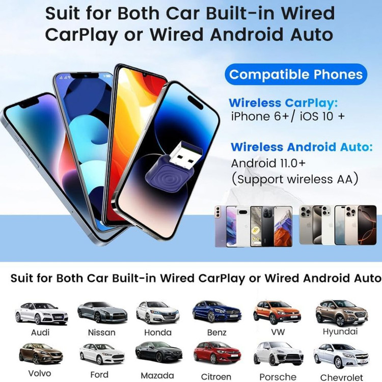 | عملکرد | تبدیل CarPlay/Android Auto سیمی به بیسیم |