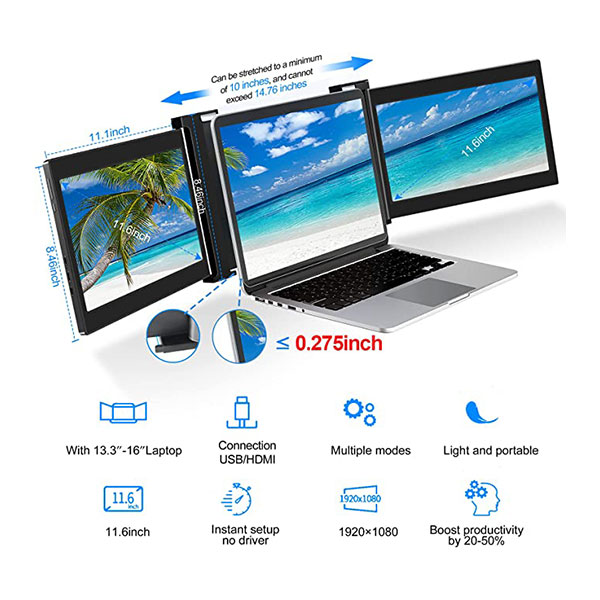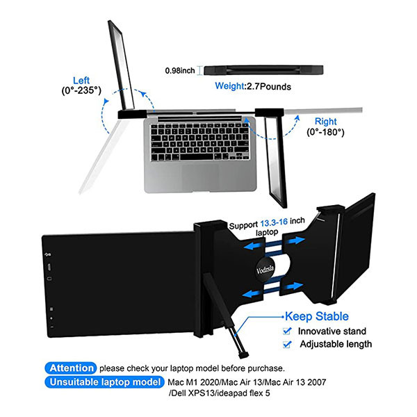 مانیتور لپ تاپ VODZSLA به شما کمک میکند تا هرگز از کار کردن با صفحهی کوچک لپتاپ خود خسته نشوید. این مانیتور دوگانه برای گیمرها، گرافیستها، تریدرهای بازارهای مالی و برنامهنویسان بسیار کاربردی است. در ادامه با ویژگی های این مانیتور هوشمند آشنا خواهیم شد.