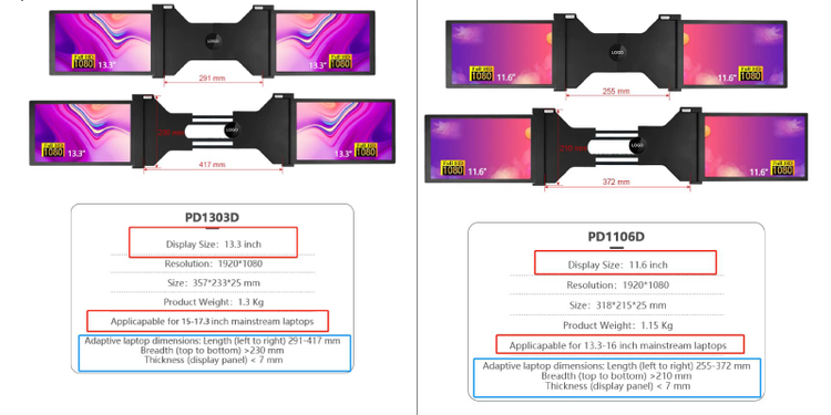 این مانیتور 3 گانه با سیستمعاملهای ویندوز، مکینتاش، لینوکس و کروم سازگاری دارد. اما همانطور که قبلتر هم اشاره شد، نیاز است لپتاپ شما دارای پورت USB-C از نوع Full featured output باشد تا بتواند تصویر را به مانیتورهای جانبی انتقال دهد. همچنین موبایلهایی هم که مجهز به این نوع از پورتهای USB-C باشند میتوانند به مانیتور متصل شوند، ولی بهترین عملکرد آن در حین کار با لپتاپ مشخص میشود. لطفا سایز مورد نظر خود را با توجه به توضیحات تصویر انتخاب نمایید: [caption id="attachment_7708" align="aligncenter" width="800"]